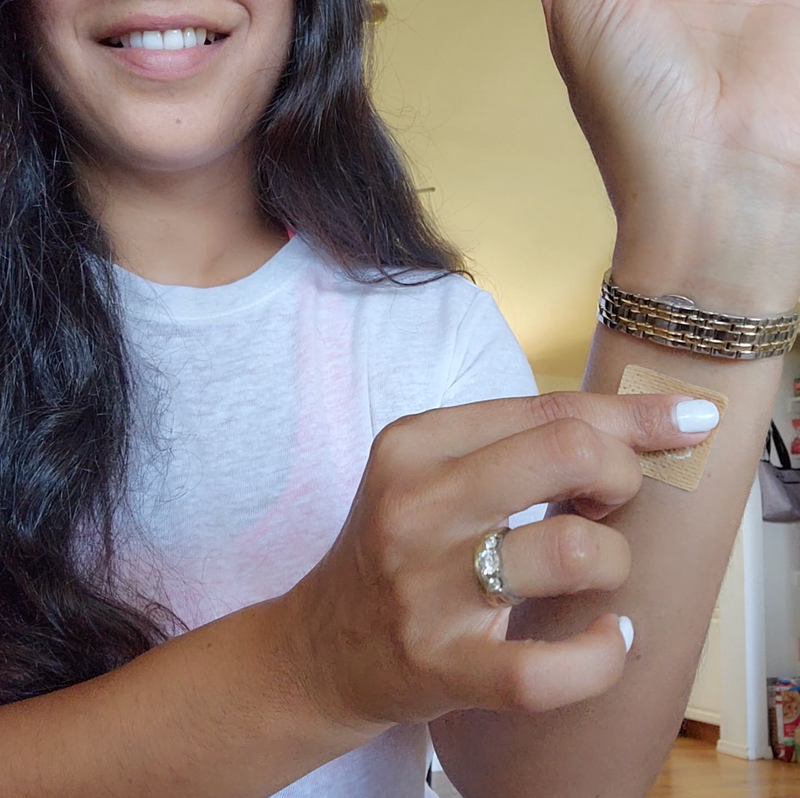 - Adhere the patch to your skin, pressing firmly.
